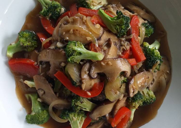 Bagaimana Membuat Jamur dengan Paprika dan Brokoli Saus Tiram yang Enak Banget