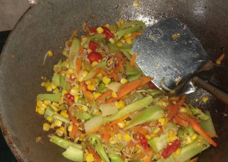 Proses memasak Tumis sayur warna-warni Lezat